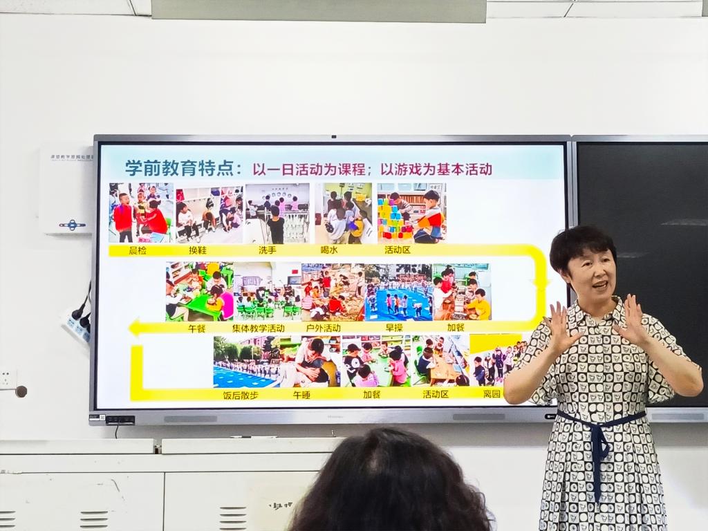 逄伟艳首先从“你印象中的幼儿园是什么样的”“你为什么选择这个职业”和“如何做幼儿园教师”等方面与同学们进行深入的交流互动,陈述了幼儿教育的重要性,并倡导大家积极学习有关学前教育的政策文件,提高专业素养。