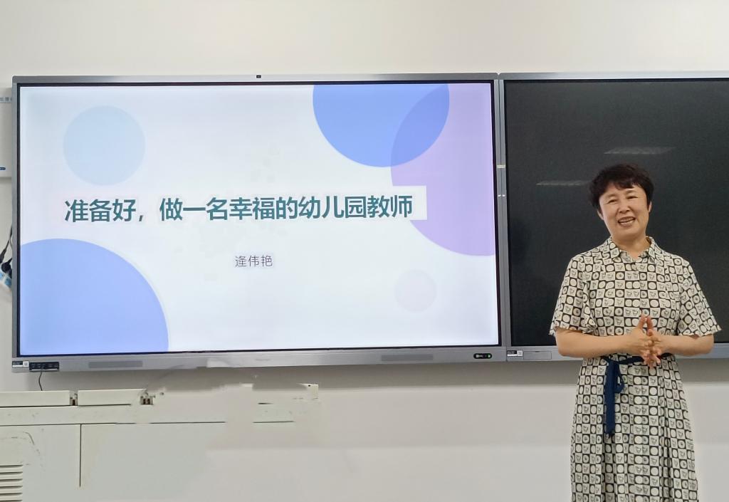 最后,逄伟艳提出“幼儿园教师幸福吗”这一问题,引发大家思考,并从“幸福哪里来”以及个人感悟等方面,呼吁同学们做个有思想的人、有情怀的人、有趣的人,强大自己。