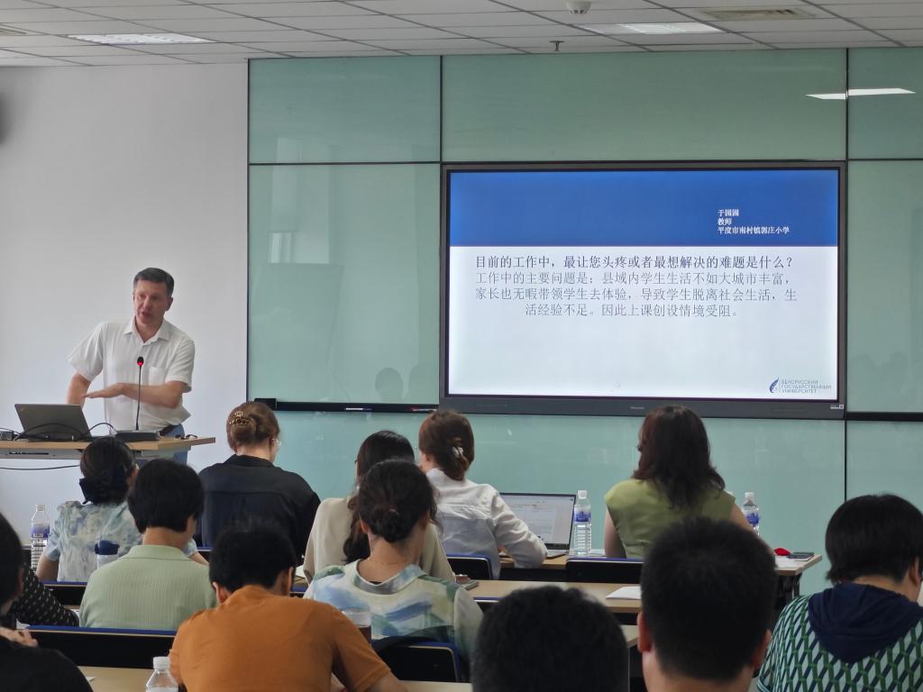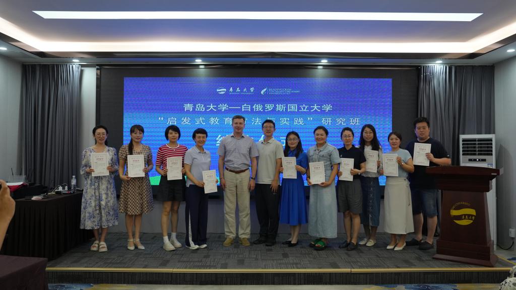 7 月4 日至9日,吃瓜 、白俄罗斯国立大学携手为青岛市第五期名师培养工程(义务教育学段)学员们组织了富有国际视野与教育情怀的“启发式教育方法与实践”工作坊。白俄罗斯国立大学校长安德烈・德米特里耶维奇・科罗尔教授全程六天进行授课,通过理论讲授、实践演练、点评研讨等多元形式,为名师学员们搭建了从理念认知到落地实践的启发式教育体系。吃瓜 校长魏志强,青岛市教育局二级调研员张文学,吃瓜 党委书记刘清亮、院长孙百才在开班仪式上致辞。
