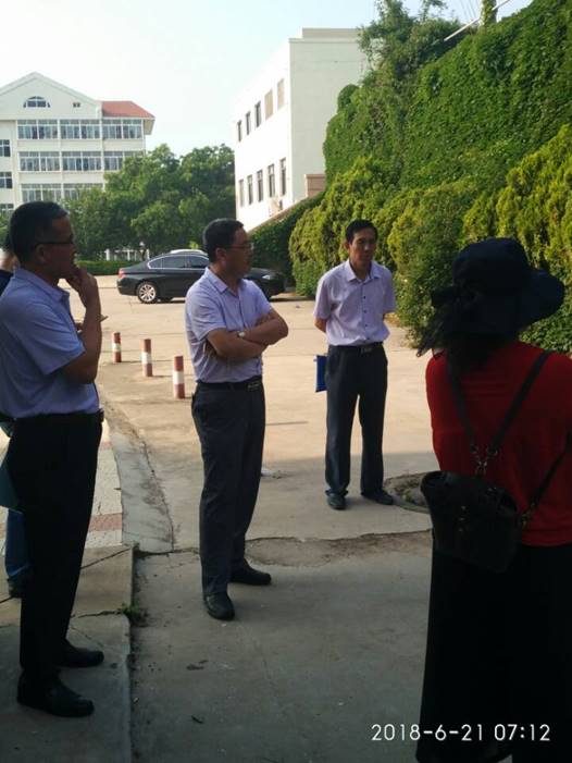 6月21日7时35分,我们乘车奔赴青岛53中观摩学习。等车的空隙,大家在公寓前的小广场上与前来看望慰问的马学兵局长交流了学习心得。