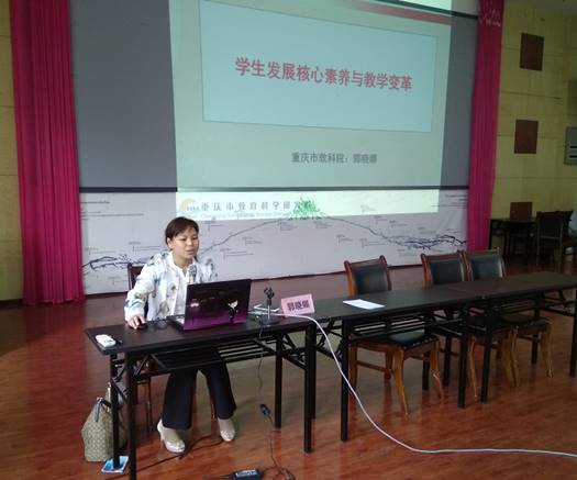开班典礼结束后,重庆市教科所郭晓娜教授做了“学生发展核心素养与教学改革”专题报告。郭教授对如何培养学生的核心素养进行了剖析,并就北师大版与华东师大版核心素养进行了对比解读。