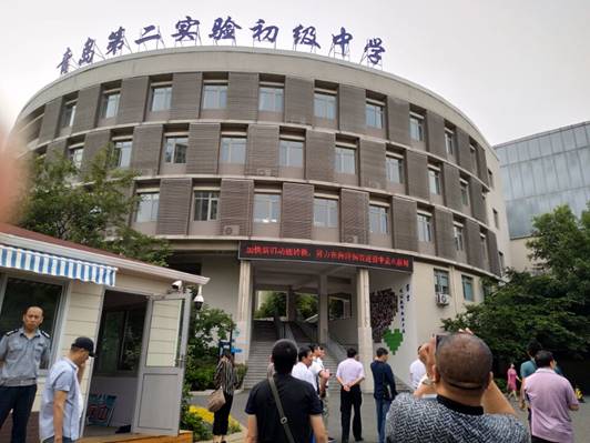 6月22日上午,我们乘坐大巴车到达青岛市市内三区中面积最大的初级中学――青岛市第二实验初级中学。