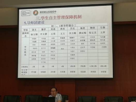 6月26日下午,大家聆听了峡山实验初中朱建馨副校长有关“学生自主管理体系”和“家校共育”方面的精彩报告,清晰地了解了该校这些方面的特色和具体做法。