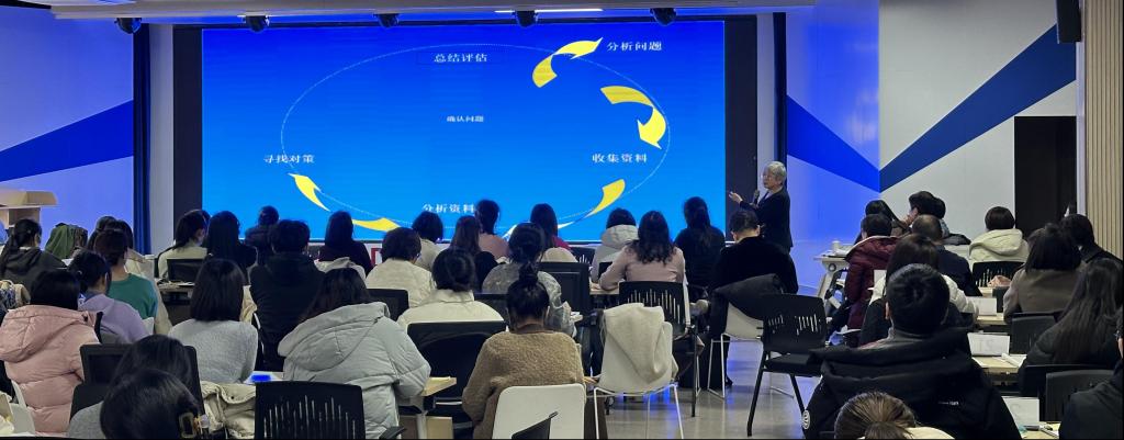 陈向明教授提出问题与现场师生互动,让现场师生在便利贴上写下对行动研究的理解。随后,陈教授对社会科学研究的主要类型进行了简要概述,借助“红旗小学特色作业创新”这一实例,详尽阐述了行动研究的四轮实施流程,针对主题内容随机提问,与现场青年教师展开深入互动;以“学生对数学学习的体验”为例,具体讲解了三种分析资料的方法;以《高校辅导员双线晋升悖论—一项基于扎根理论的研究》论文为例,深入浅出地讲解了扎根理论的研究过程;还将其中的一段访谈材料让现场师生做三级编码练习,现场提问与指导,让与会者获得对文本材料三级编码的实践经验。